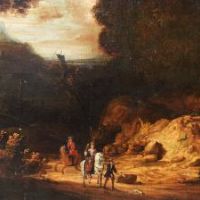 L'œuvre s'inscrit dans le contexte de production des peintres paysagistes flamands, hollandais et français, qui ont enrichi la scène romaine au XVIIe siècle. Parmi les différents artistes, en relation avec cette œuvre, il faut citer Pandolfo Reschi (1643-1696), Frederik de Moucheron (1633-1686) et surtout Jan Both (Utrecht, 1618-1652). L'artiste fut l'élève du peintre Gerard van Honthorst et s'installa en Italie vers 1635. À Rome, il fut influencé par l'art de Claude Lorrain, avec lequel il collabora, mais sa production de scènes de genre à caractère bambochade, où il décrit des épisodes de la vie quotidienne, est tout aussi importante. De retour à Utrecht (probablement en 1642), il continua à peindre des paysages de goût italianisant baignés d'une lumière chaude et dorée, en harmonie avec Bartholomeus Breenbergh.